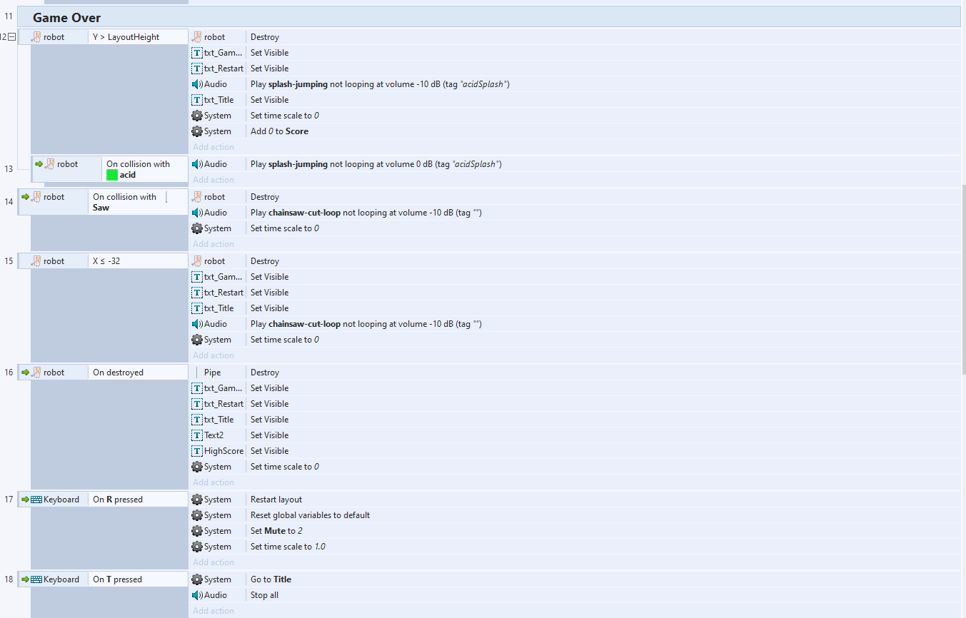 And the place that I think it'll fit that when your robot on destroyed. Add a sub-event and put my condition there.