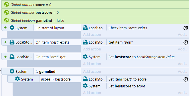 I saw in your first screenshot, On "HighScore" get, you should set the variable HighScore not the key "HighScore" of Local Storage.