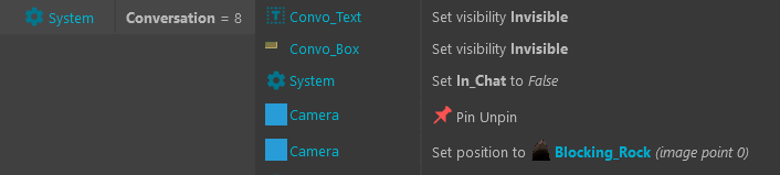 And then, just after a conversation has ending, it triggered the camera moving away from the player:::