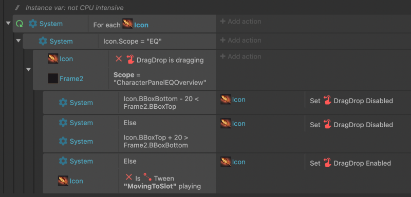 - Understanding "Pick by UID" or "Pick Child/Parent" is the categorical optimal way to pick an object, again, especially if in a long loop - Instance Variables could eat away at CPU... (But now there's exploring "Evaluate expression" which may render Instance Variables more ideal to use in a busy loop