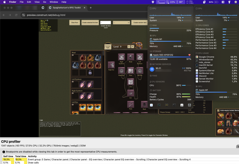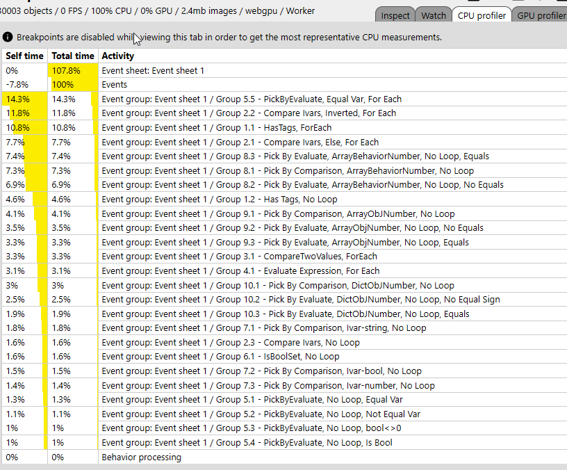 2. Doing tests with "2 Groups enabled and compare CPU Profiler", CPU gets even higher than doing singular tests (The difference in CPU will also be less clear, explained below).