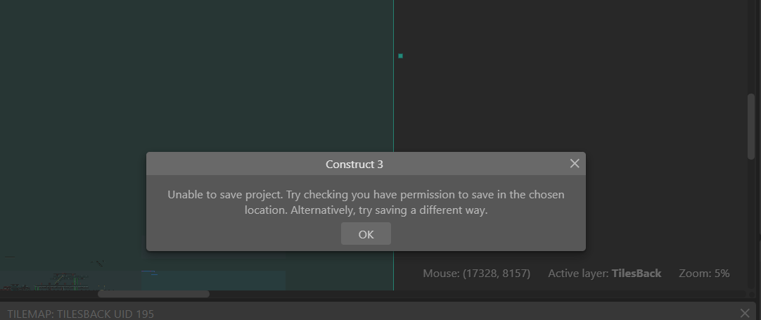 I can't save the project after I change the tilemap width. What could be the problem? This issue is critical for me; I can't continue working on the project.