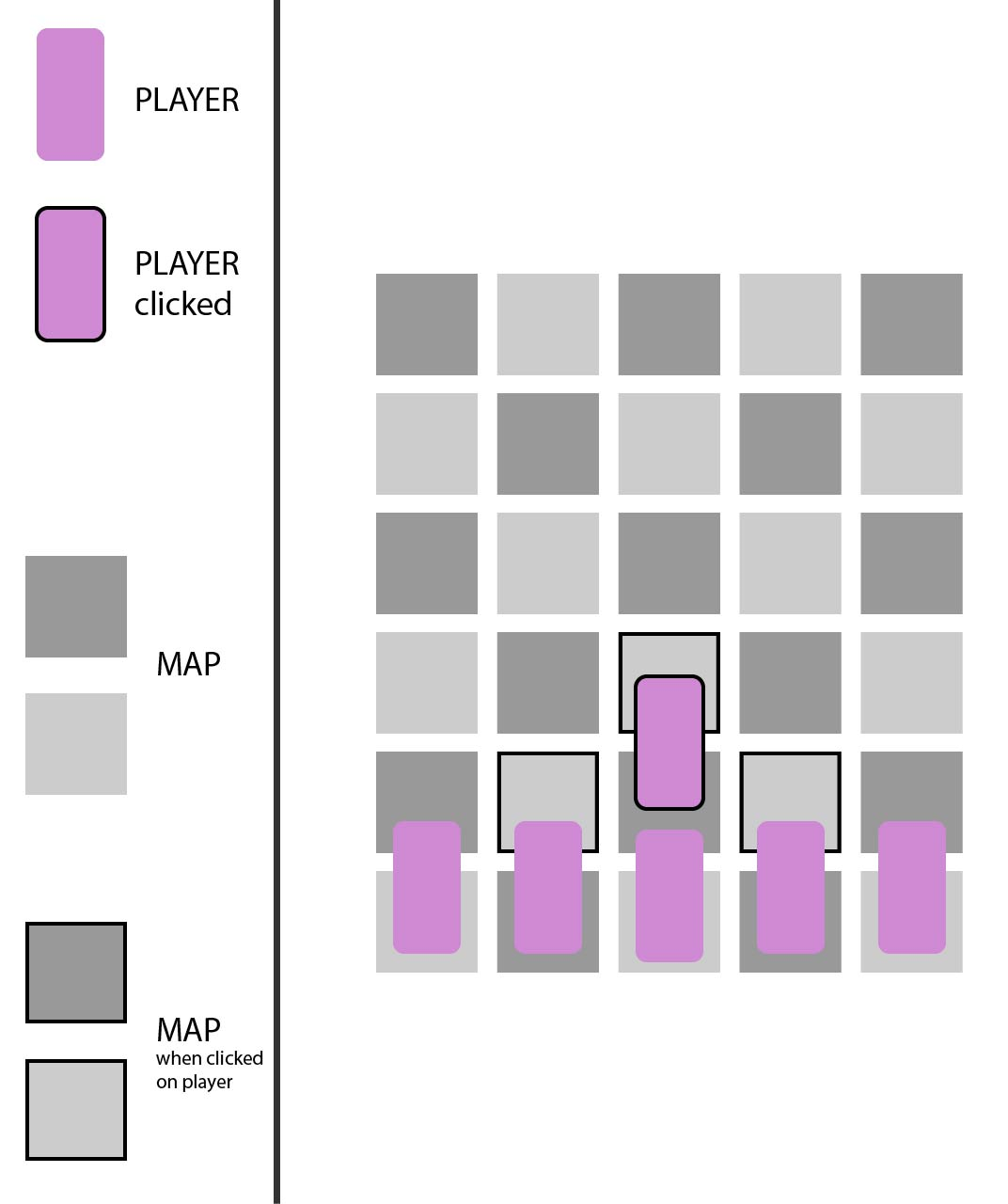 When you click with the mouse on one of the characters, the possible fields should light up.