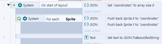 -----> System: Create object Sprite on layer 0 at (JSON.Get("sprite."&JSON.CurrentKey&".xy.0"), JSON.Get("sprite."&JSON.CurrentKey&".xy.1"))