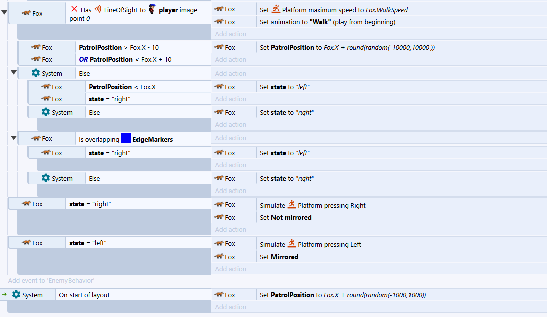 Nevermind, I just fixed it! I had to change the OR condition to AND. Also had to remove the state = "right" under patrol position.