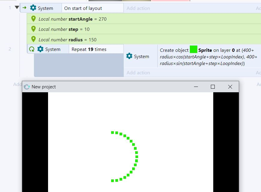 Alternatively you can spawn them all in the same spot (center) and use the move at angle action, with angle increments*loopindex.