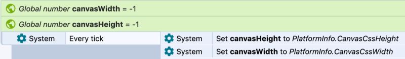 For point 1, I was first trying to obtain a size similar to that seen as system canvas size in the debugger. JS screen.width/height didn't work for that (because they included the debugger), layout size didn't change from the original either, and that's when I stumbled across PlatformInfo. I thought I'd experiment with using either the device or CSS size from PlatformInfo to see which one maps more closely to the problem at hand. I think it'll be CSS from what I've seen so far.