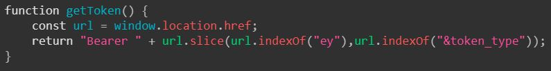 window.location.href will return the full url. We slice out the part where the Token starts ("ey") until the part where it ends ("&token_type").
