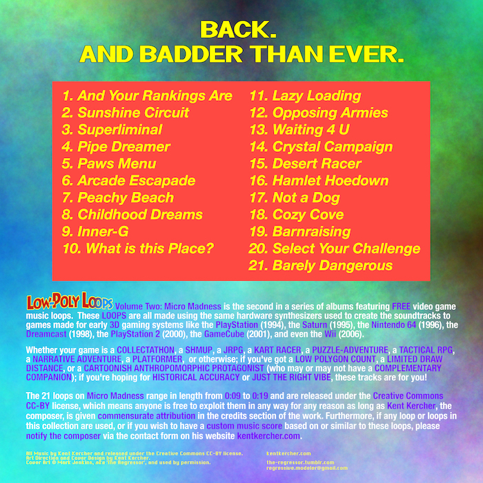 Find it on Bandcamp: https://kentkercher.bandcamp.com/album/low-poly-loops-volume-two-micro-madness