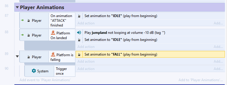 Hey gang! This is my first post so thanks for any help you can provide. I wanted to have a fall animation so on my event sheet:
