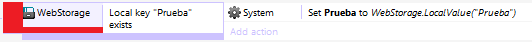 Accion: System >> Set value[Prueba, 0] (De lo contrario (Else) si no se encuentra ese dato en WebStorage se el valor de Prueba sera 0)