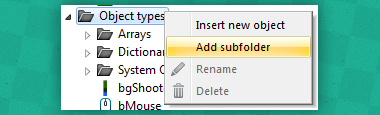 The second very important thing to do, is having a family that contains all objects. This way you can have events that affect every object, such as destroying objects that are off screen, and counting the number of objects in your game.