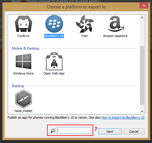 Alternatively if you don't feel like adding in command line options would be worth your time -especially with C3 in in the beginning stages- I have a secondary suggestion. I've tried working around the lack of command line export options by using AutoIt https://www.autoitscript.com/site/autoit/. It's really hacky, brittle and messy but I got it really close to working. The part where AutoIt fails is on the export dialog page. The reason it fails is there is no way to reliably select the same export platform, especially when platforms are being added or deprecated. This could be solved by adding a search dialog to the export dialog like below: