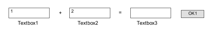 1.How I can plus “textbox1” value and “textbox2” value to result in “textbox3” when click “ok1” button.