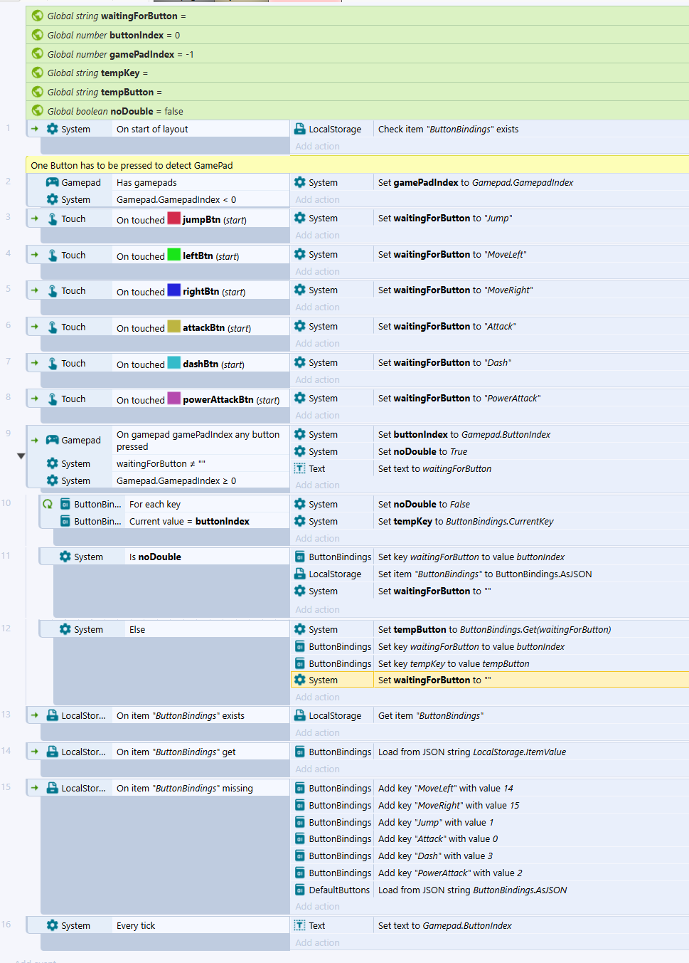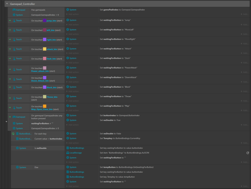 How can I adapt my current system to gamepad input? Unlike the keyboard, if a button assigned to one action is already used for another action, I would like to apply a switch logic between the two instead of adding new button mappings.